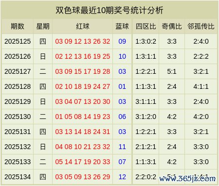 其中红球四区比为2:2:0:2,奇偶比为5:1,邻孤传比1:4:1。